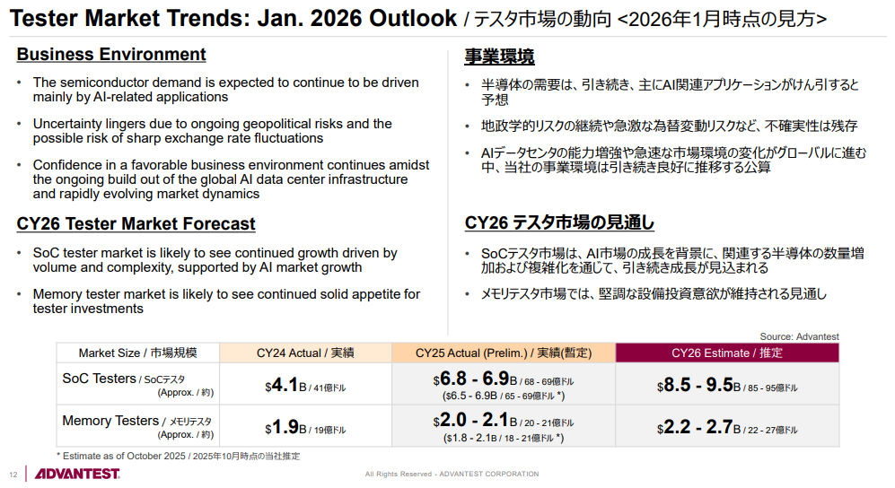 • Advantest’s testing equipment demand rises