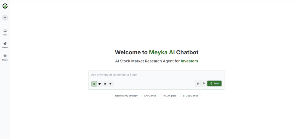 Meyka uses language models trained specifically on market data, filings, financial reports, and trading information. This gives the chatbot deep domain expertise.