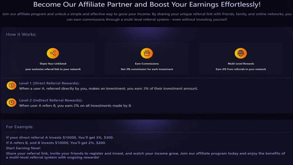 - Affiliate Program: Earn up to 5% referral rewards (3% + 2%) upon joining.