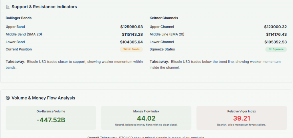 However, trading volumes have declined, showing hesitation among retail investors. Analysts note that a decisive close above US$117,000 could strengthen the bullish setup, while a dip below US$100,000 might trigger caution.