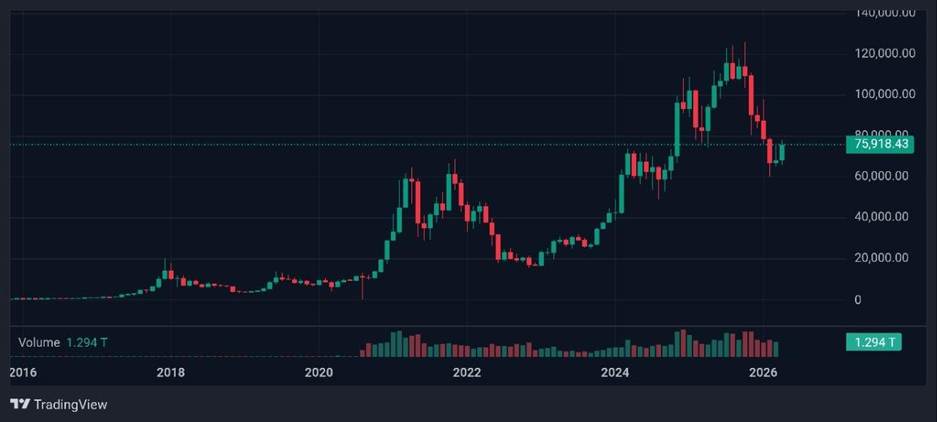 As of writing, the Bitcoin price is sitting around $75,900 after a steady 7.9% climb this month, though the rest of the market is giving mixed signals. While the long-term outlook still looks good, prices are currently jumping or dipping whenever news breaks about the rising tensions between the US and Iran.