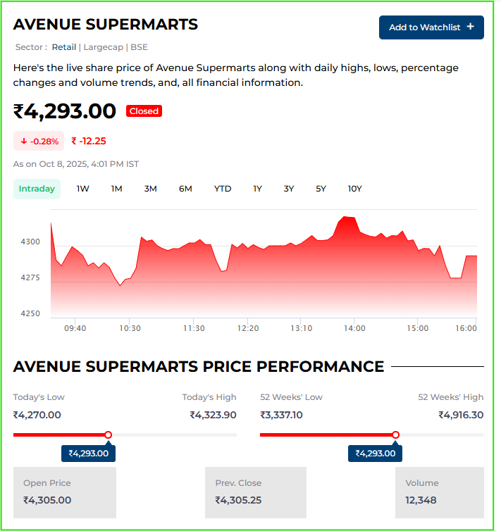 Most analysts referenced by market reports view the correction as temporary. Motilal Oswal specifically pointed to the company’s low leverage, steady cash flow and proven retail model. They see the DMart Share as attractively valued relative to its execution capabilities, and expect margin recovery as inflationary pressures ease and festive demand returns.