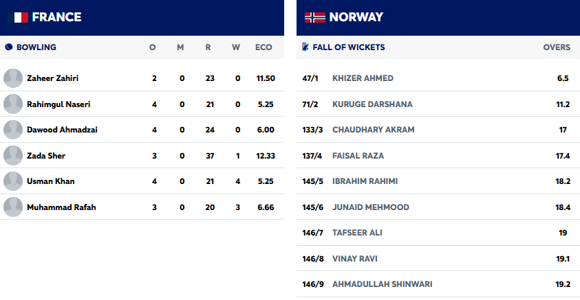 France vs Norway Full Scorecard: Complete Batting and Bowling Stats from ICC Match 9