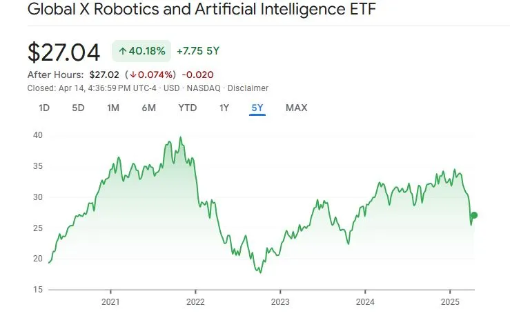 The Global X Robotics & Artificial Intelligence ETF (BOTZ) is popular. It invests in companies making AI and robots. It’s a simple way to invest in AI growth.