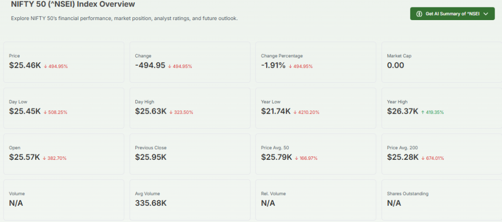Meanwhile, the Nifty 50 also gave up ground, sliding by more than 1% and ending around 25,545.9 points. This decline reflected increased pressure from global markets, particularly technology sector sell-offs in the United States and Asia, which had a ripple effect on Indian equities.