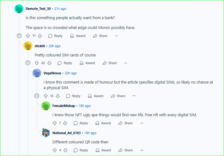 On Reddit, Monzo fans are curious and cautious. One user asks: “Is this something people actually want from a bank?” Another sees potential in bundling services: “Consolidation, if I can bundle this into Perks or something, I happily would, if the price is compelling,”. So there’s interest, but consumers will want strong value and clarity.