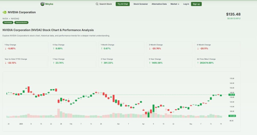 Over the past year, Nvidia’s stock peaked at $195.95 and dipped to $75.61.