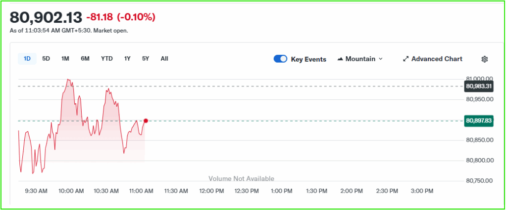 Early trade showed modest moves, with the BSE Sensex barely changed and the Nifty50 holding around intraday levels. Some heavyweight stocks led the choppiness as markets reacted to company news and global headlines.