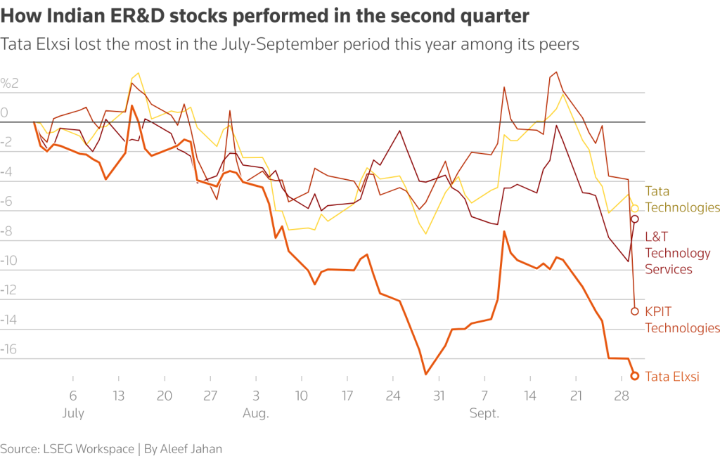 Tata Elxsi Shares Dip 3% as Q2 Profit Slumps 32.5% YoY; Sequential Growth Offers Relief